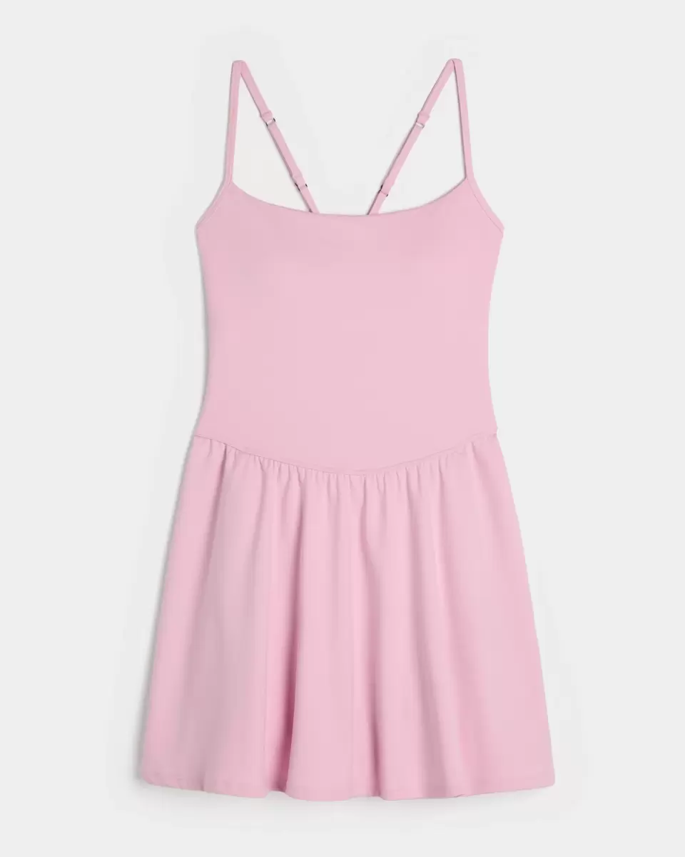 This super cute dress is made with soft active fabric and features built-in shorts with pocket. Strappy back. Adjustable straps. Imported.
