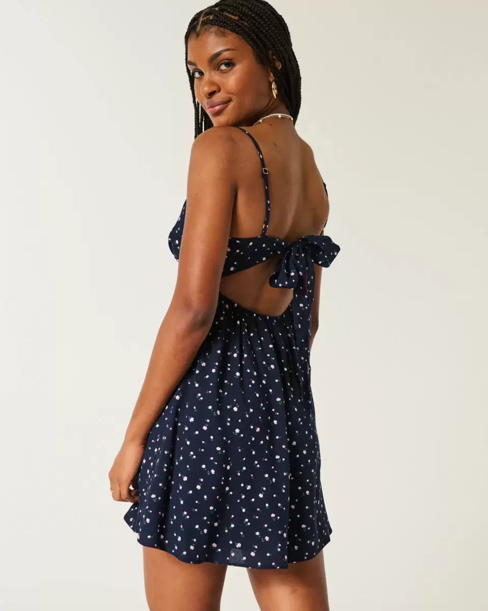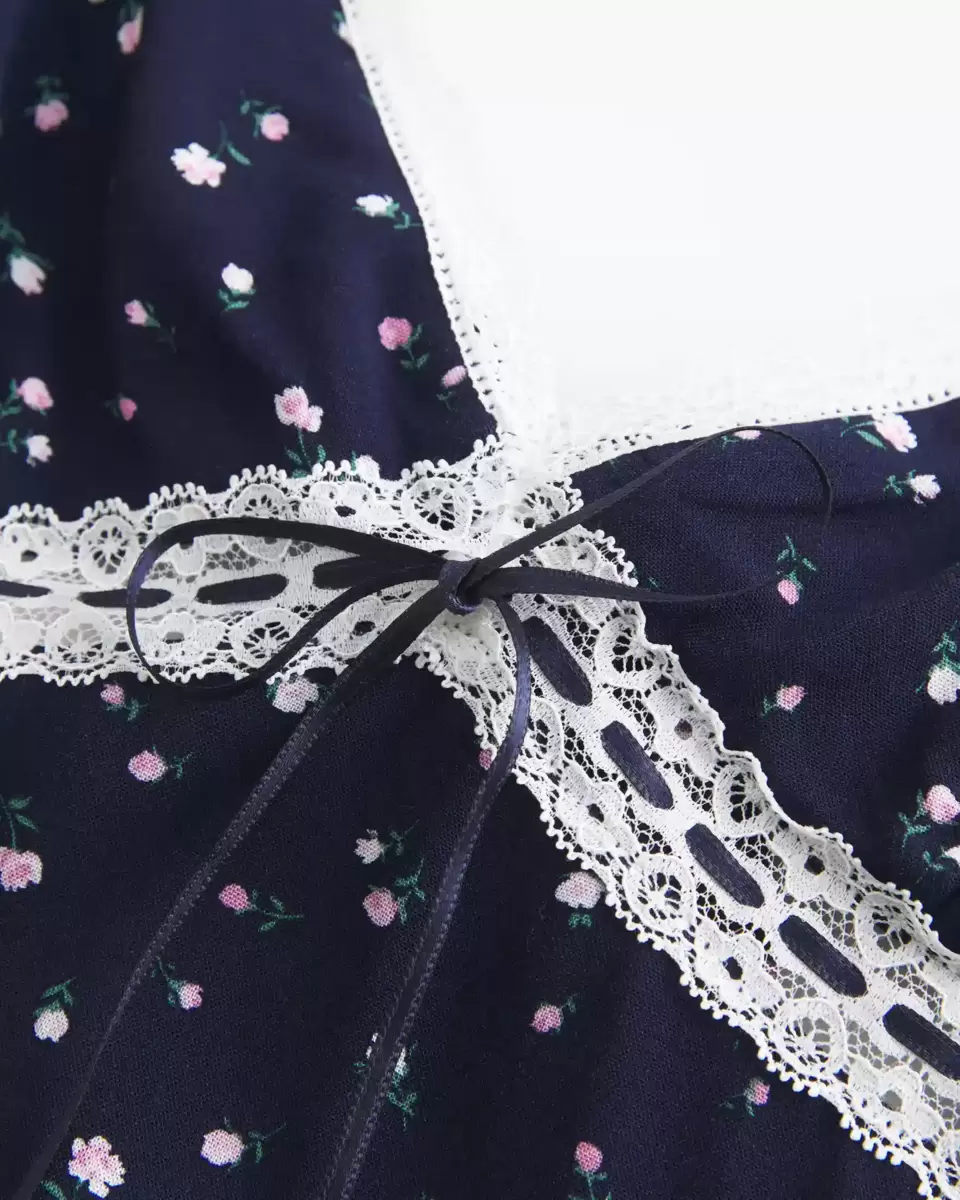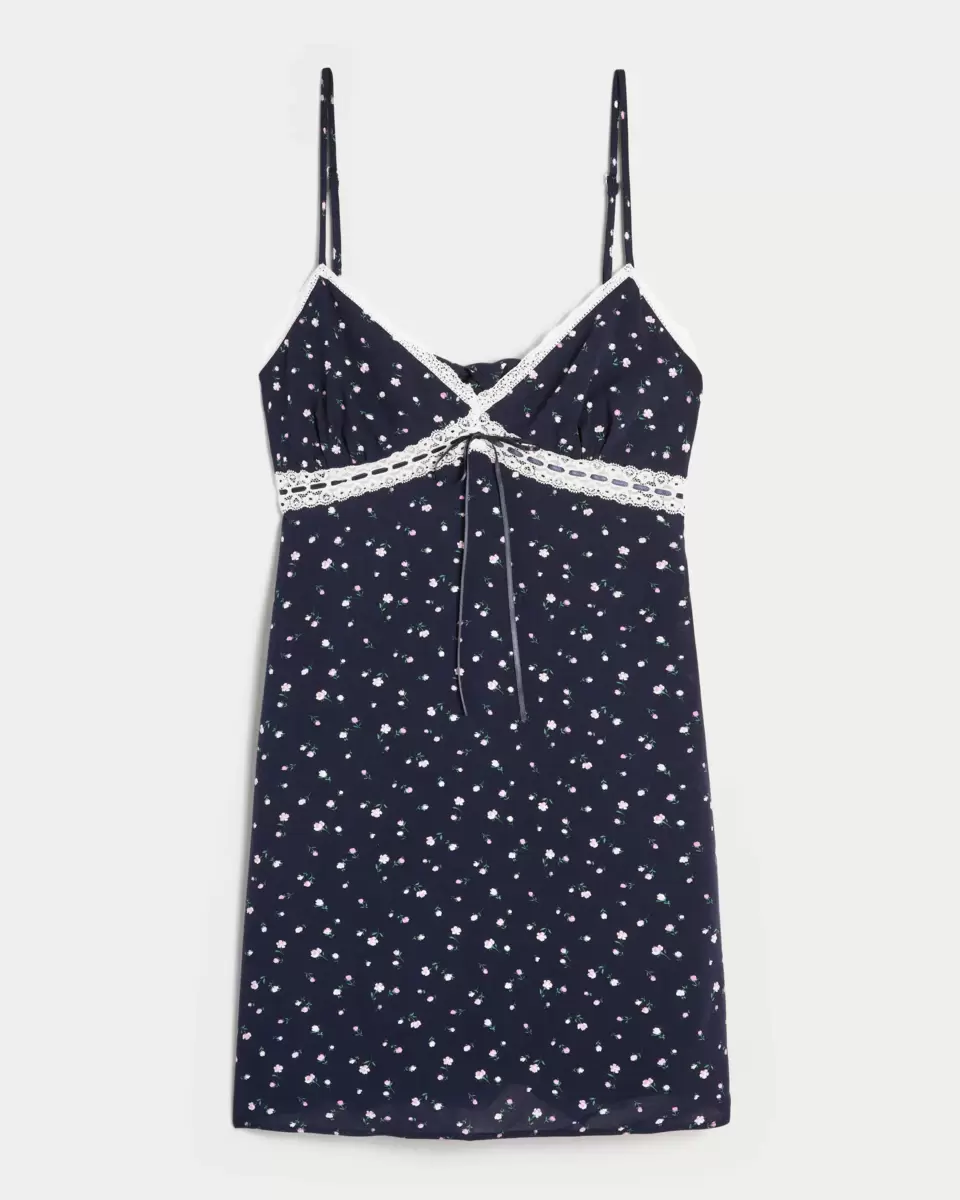 This easy throw-on slip dress features a pretty tie at the waist with lace detailing. Adjustable tie-back detail, adjustable straps. Imported.