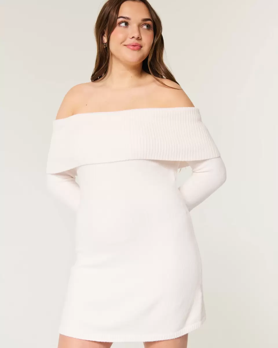 This cute, comfy and super soft sweater dress is designed with a foldover off-the-shoulder neckline and long sleeves. Skater silhouette.