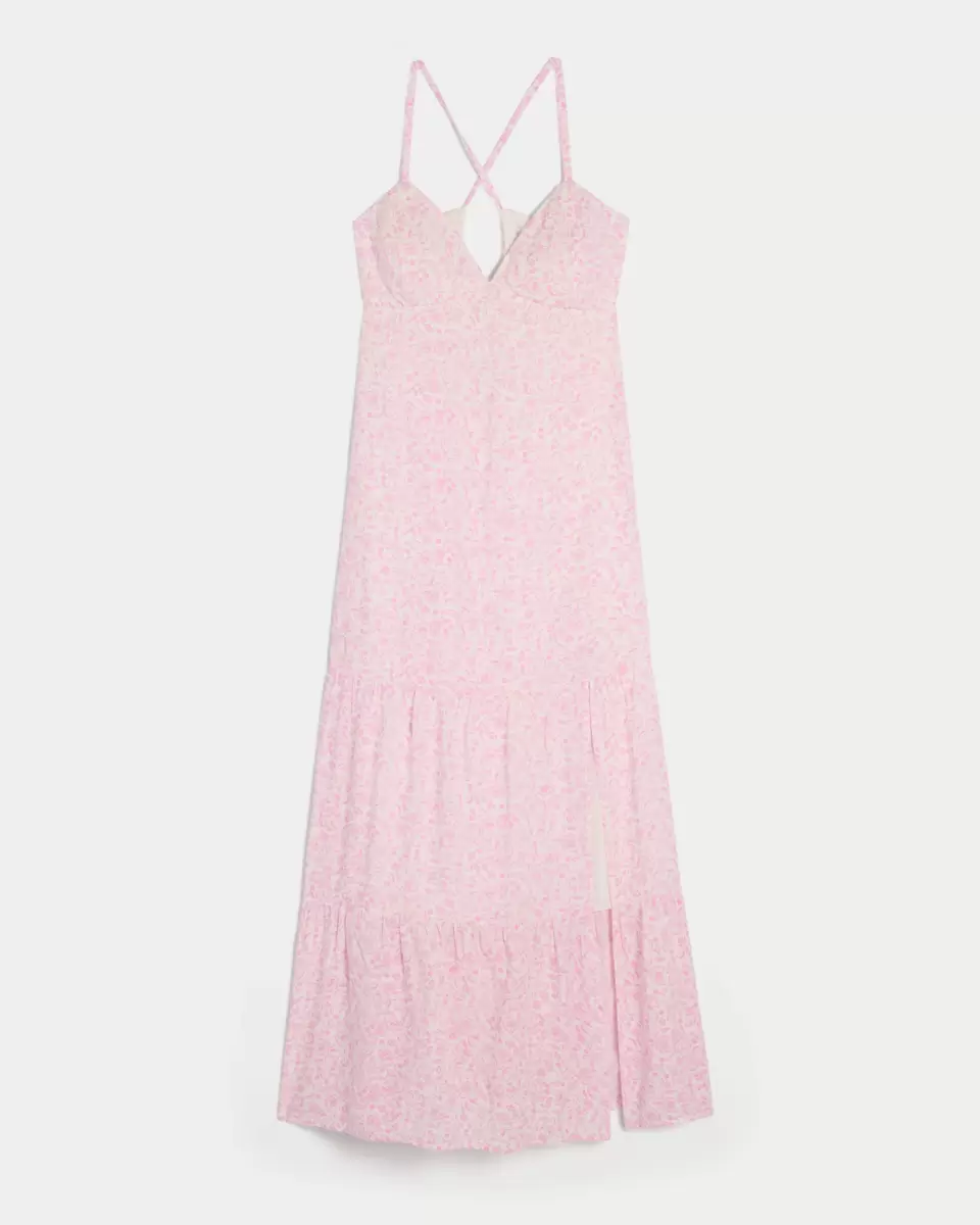 A pretty and super soft maxi-length dress with cross-back straps and an open back detail. Split hem detail. Imported.