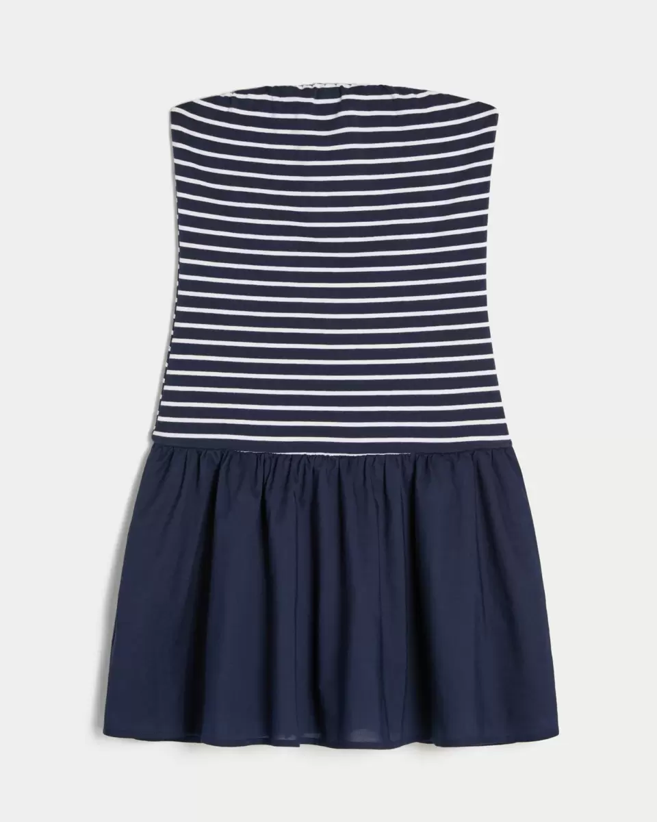 Strapless Drop-Waist Knit-Woven Mini Dress