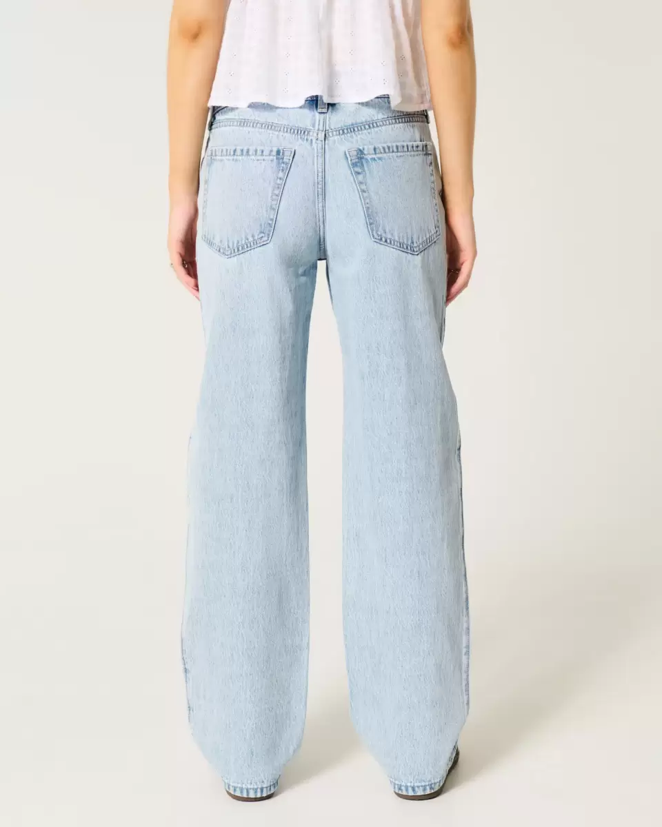 Cute and comfortable denim jeans in a light wash. Loose leg, low-rise waist. Imported.