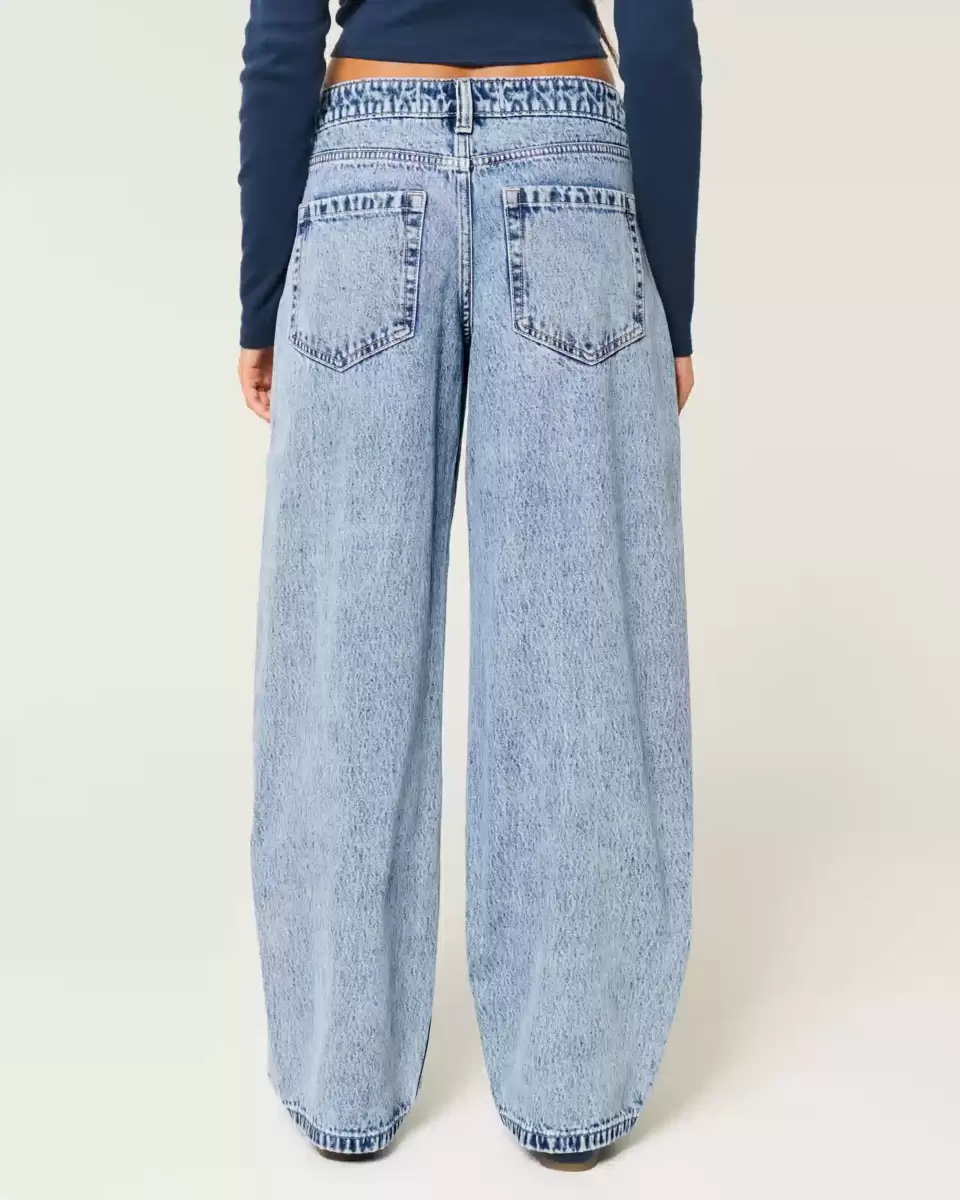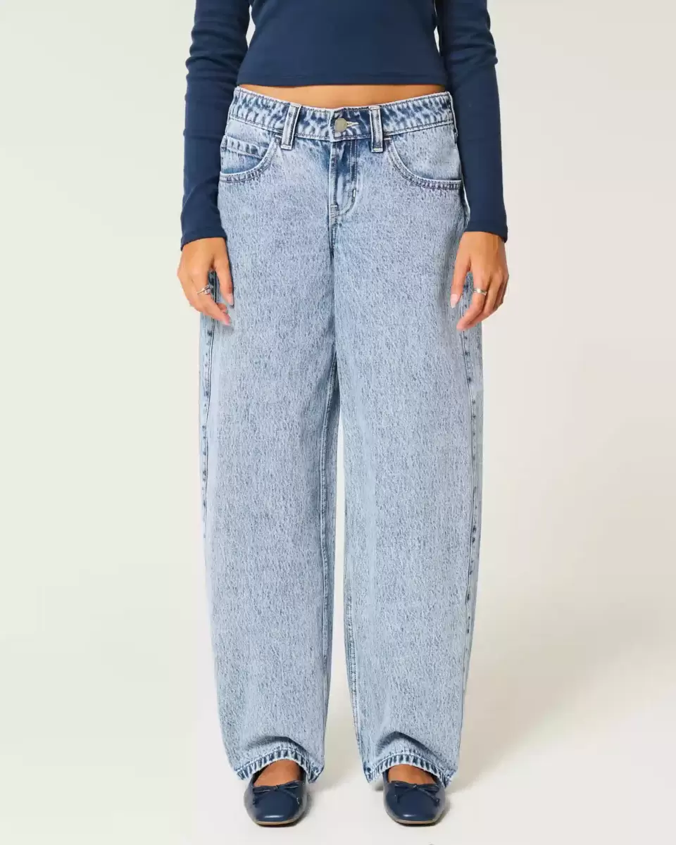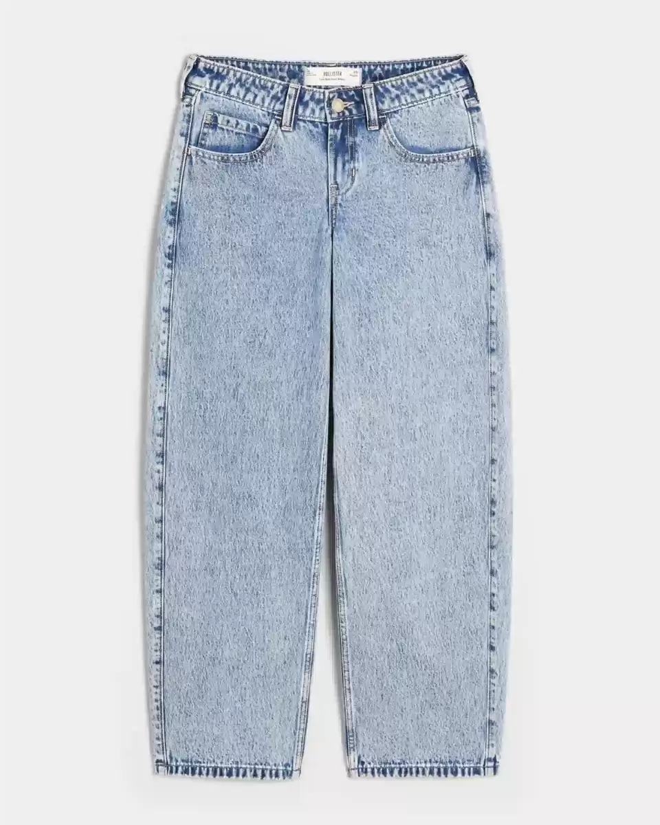 Ultra-comfortable denim jeans in a light wash designed with a baggy leg that tapers to a narrower hem. Flattering low-rise waist. Imported.
