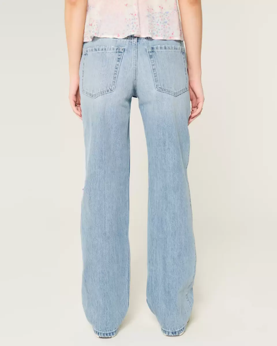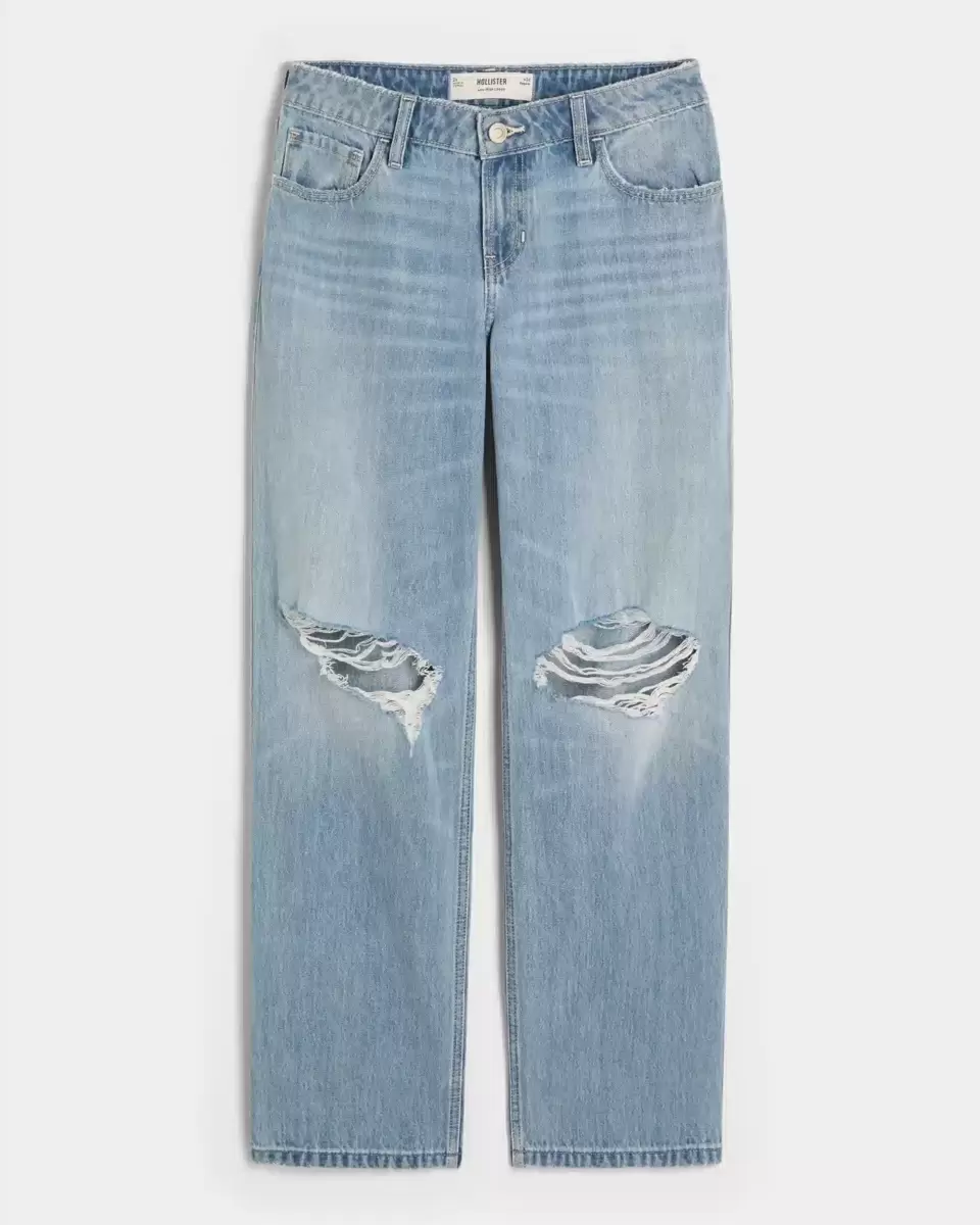 Low-Rise Ripped Light Wash Loose Jeans