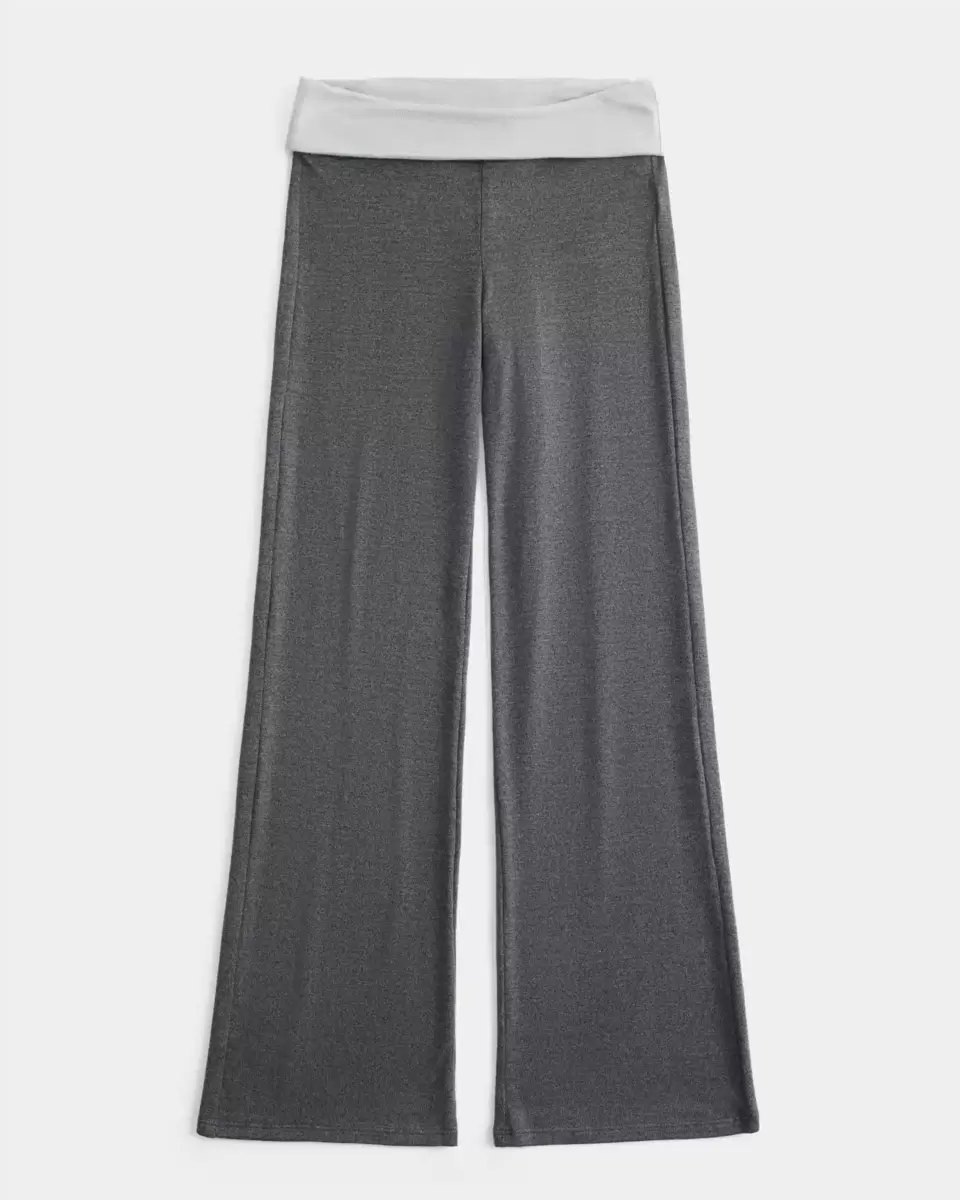 Cozy and super soft knit flare pants with a colorblock foldover waistband. Imported.