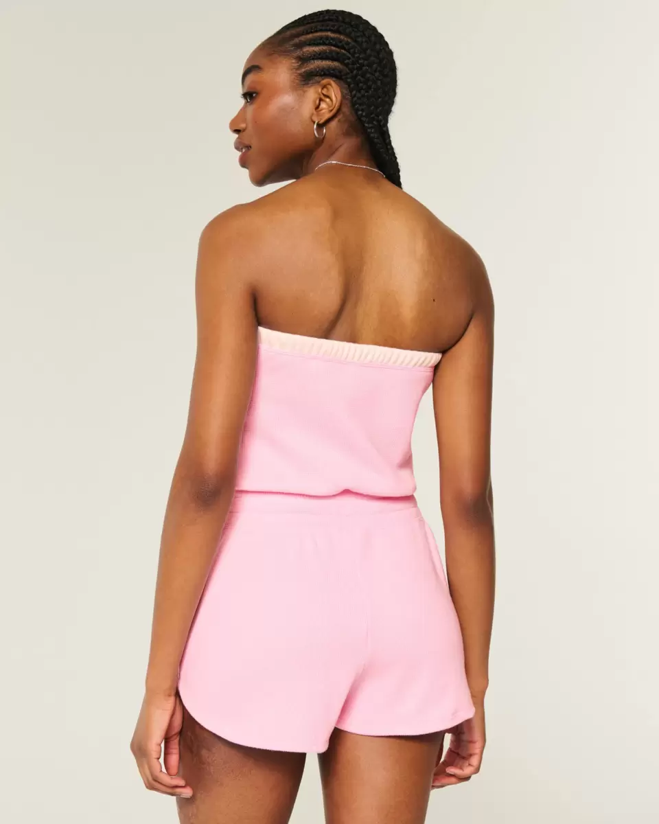 A cute and cozy onesie in super soft waffle fabric. Strapless, drawstring waist. Imported.