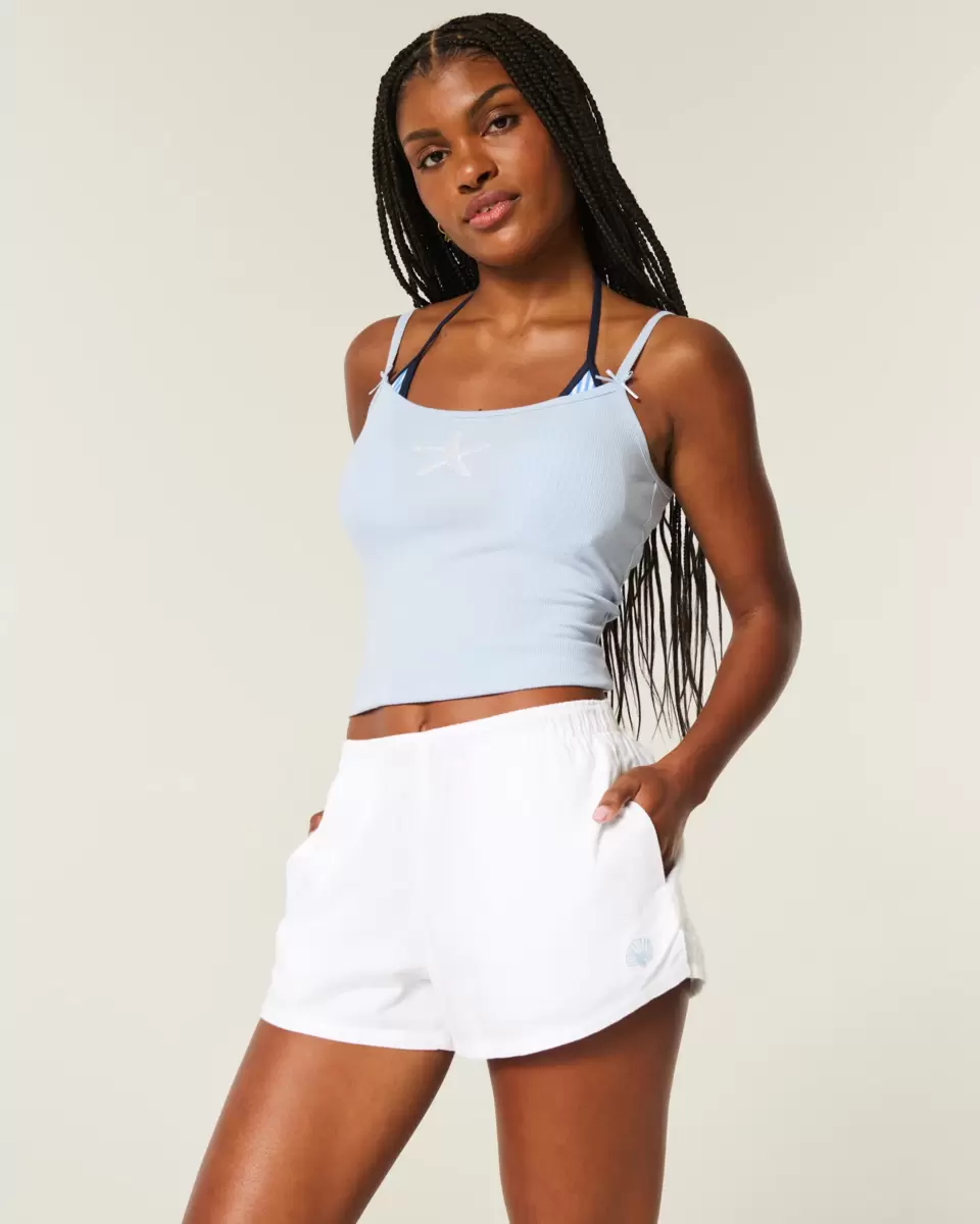 Cute and comfy boxer shorts designed with soft banded waist with inner logo details. Soft Oxford fabric, adjustable-rise waist, pockets, embroidered shell detail.