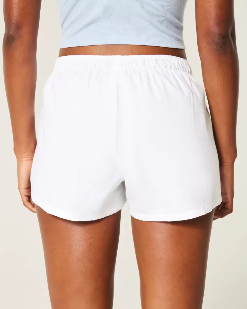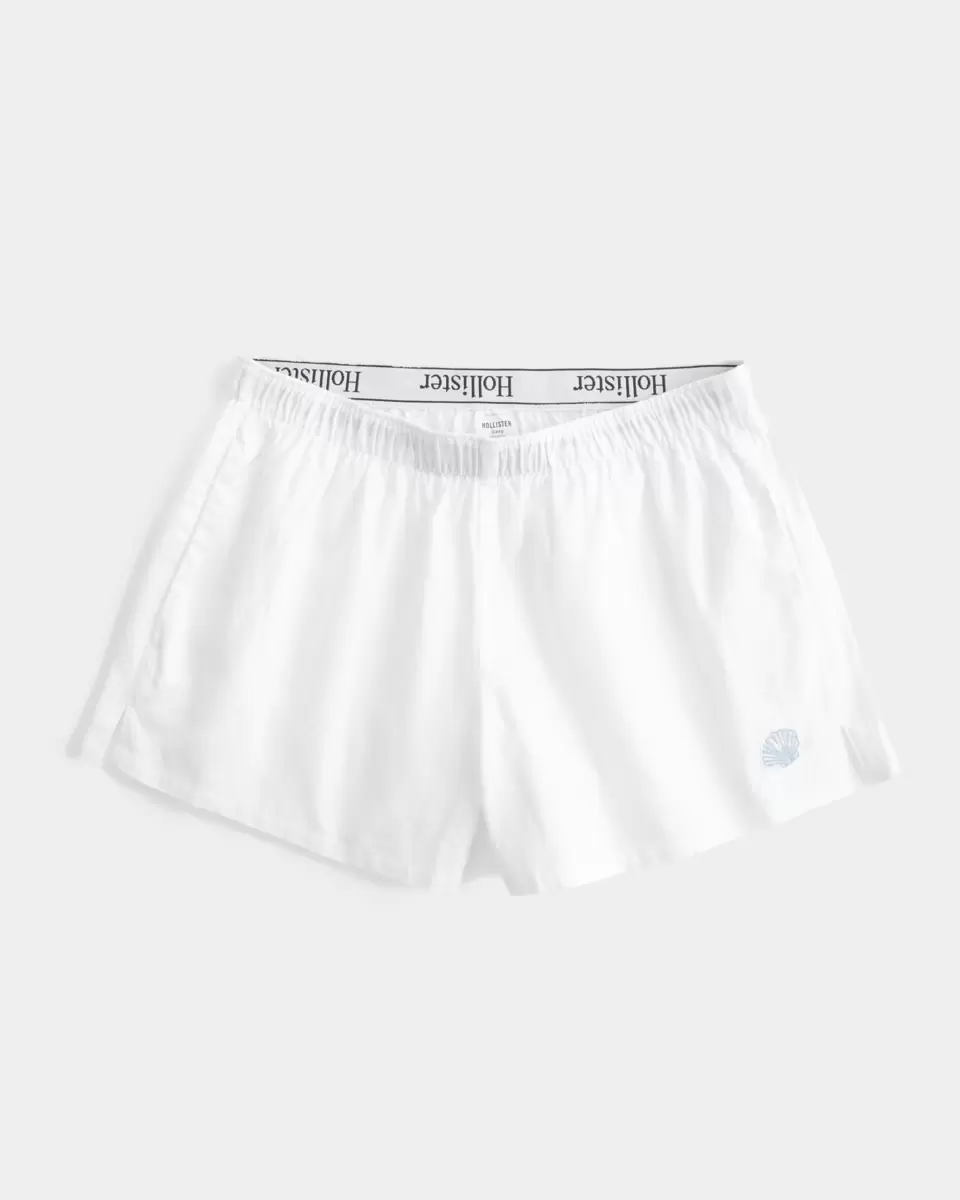 Cute and comfy boxer shorts designed with soft banded waist with inner logo details. Soft Oxford fabric, adjustable-rise waist, pockets, embroidered shell detail. Imported.