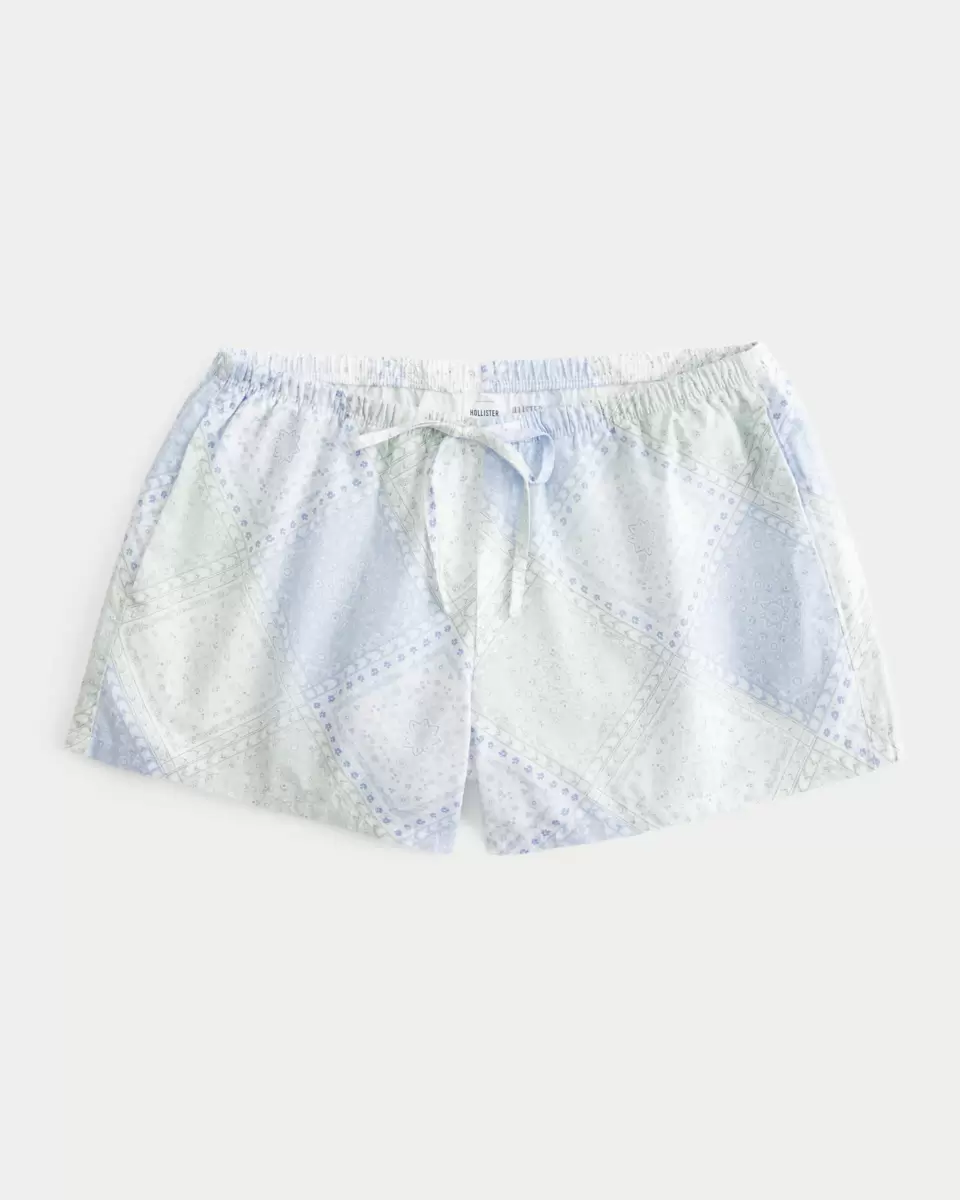 Super soft sleep shorts in Oxford cotton with a cute pattern and drawstring waist. Adjustable rise, pockets. Imported.