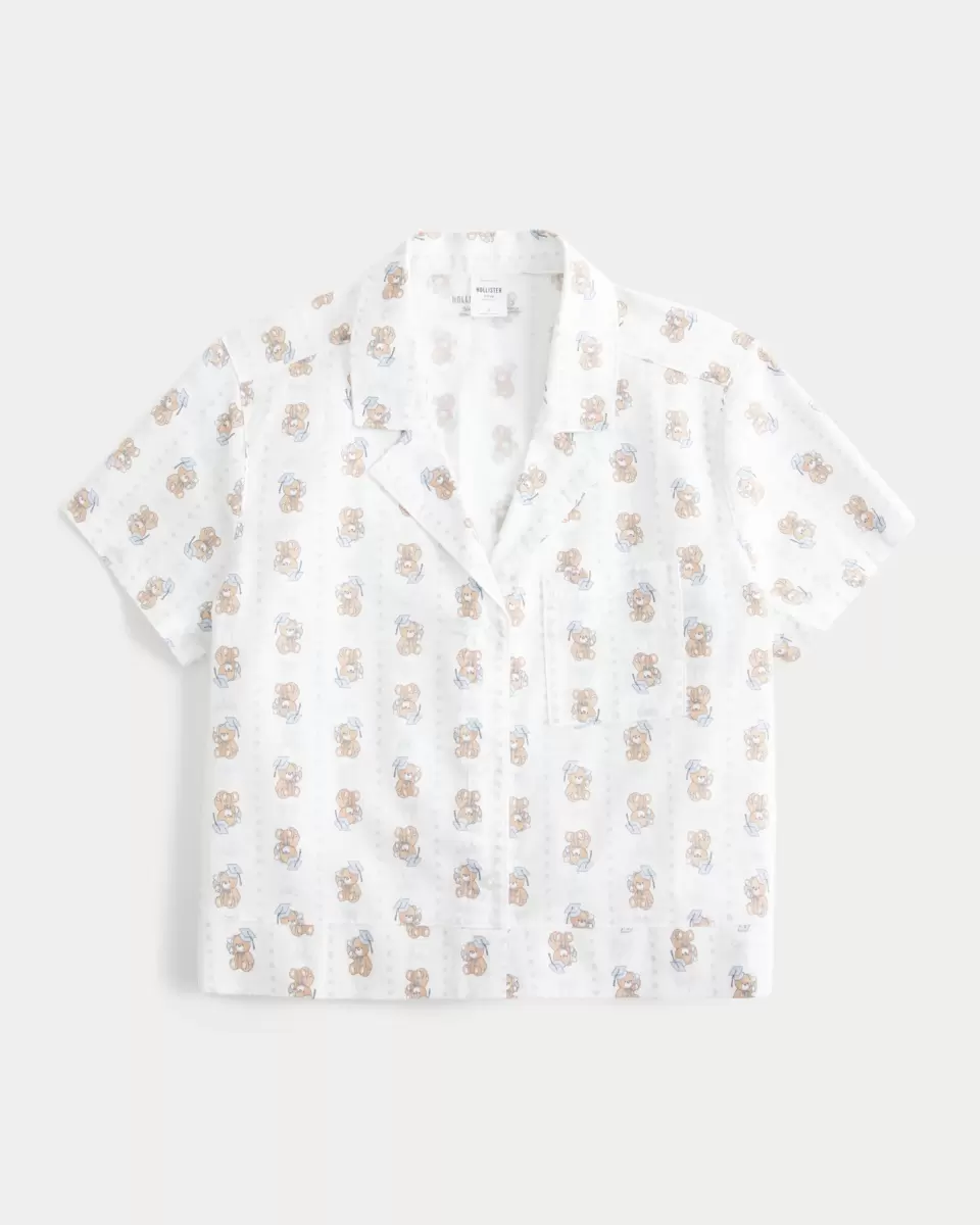 A cute sleep shirt in soft 100% cotton fabric with an all-over teddy bear pattern. Button closure, collar, short sleeves, left chest pocket. Easy Fit. Imported.
