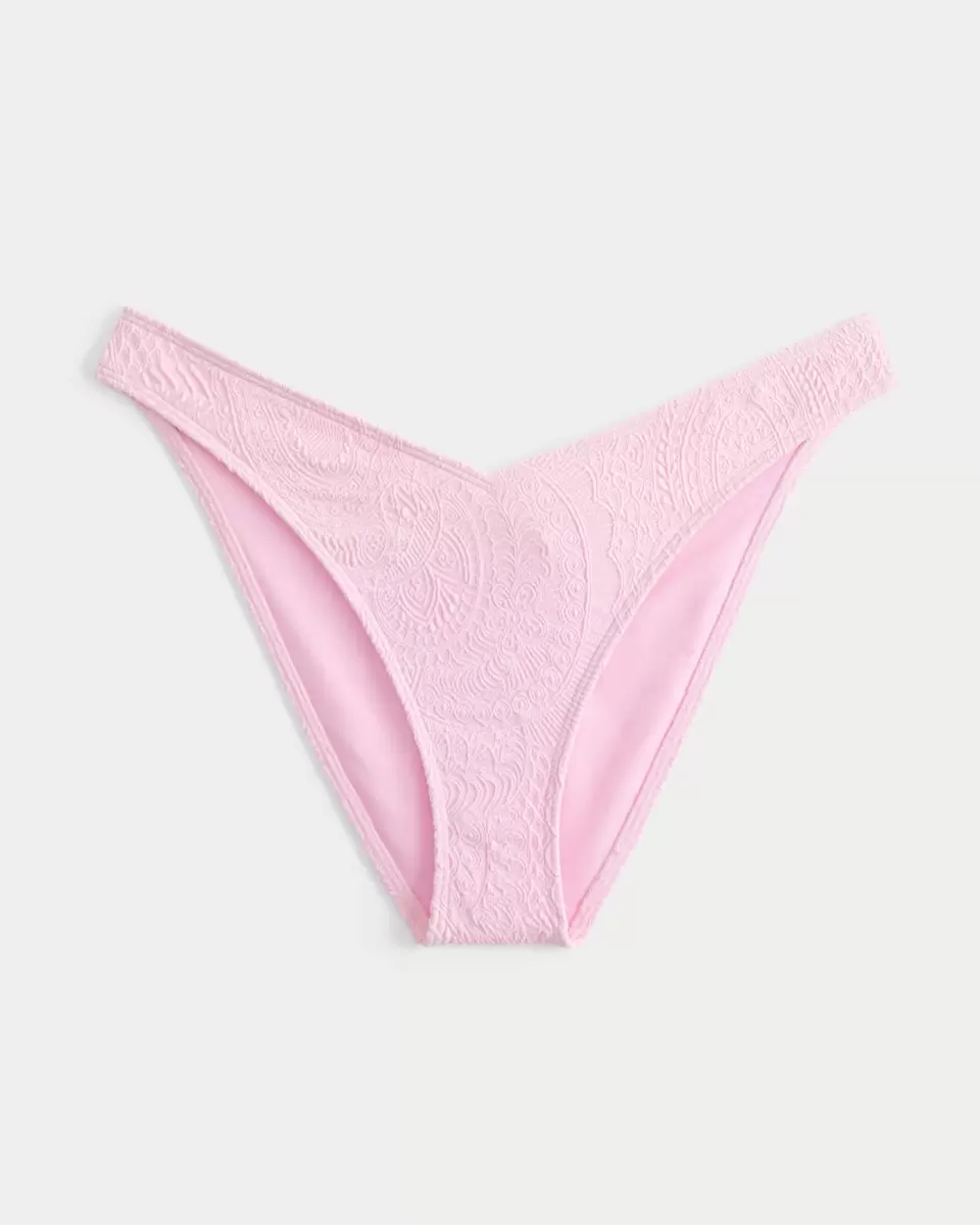 A super cute bikini bottom in soft jacquard swim fabric, designed with a high-leg silhouette and v-waist. Cheeky coverage. Imported.