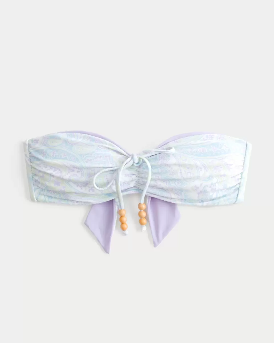 This super cute reversible bikini top can be styled as a halter or bandeau silhouette! Center tie detail with beads, tie closure. Imported.