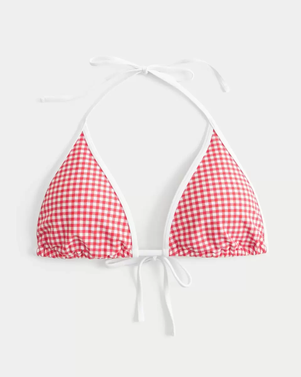 Your new fave bikini top is designed with a classic triangle silhouette and straps that tie behind the neck.