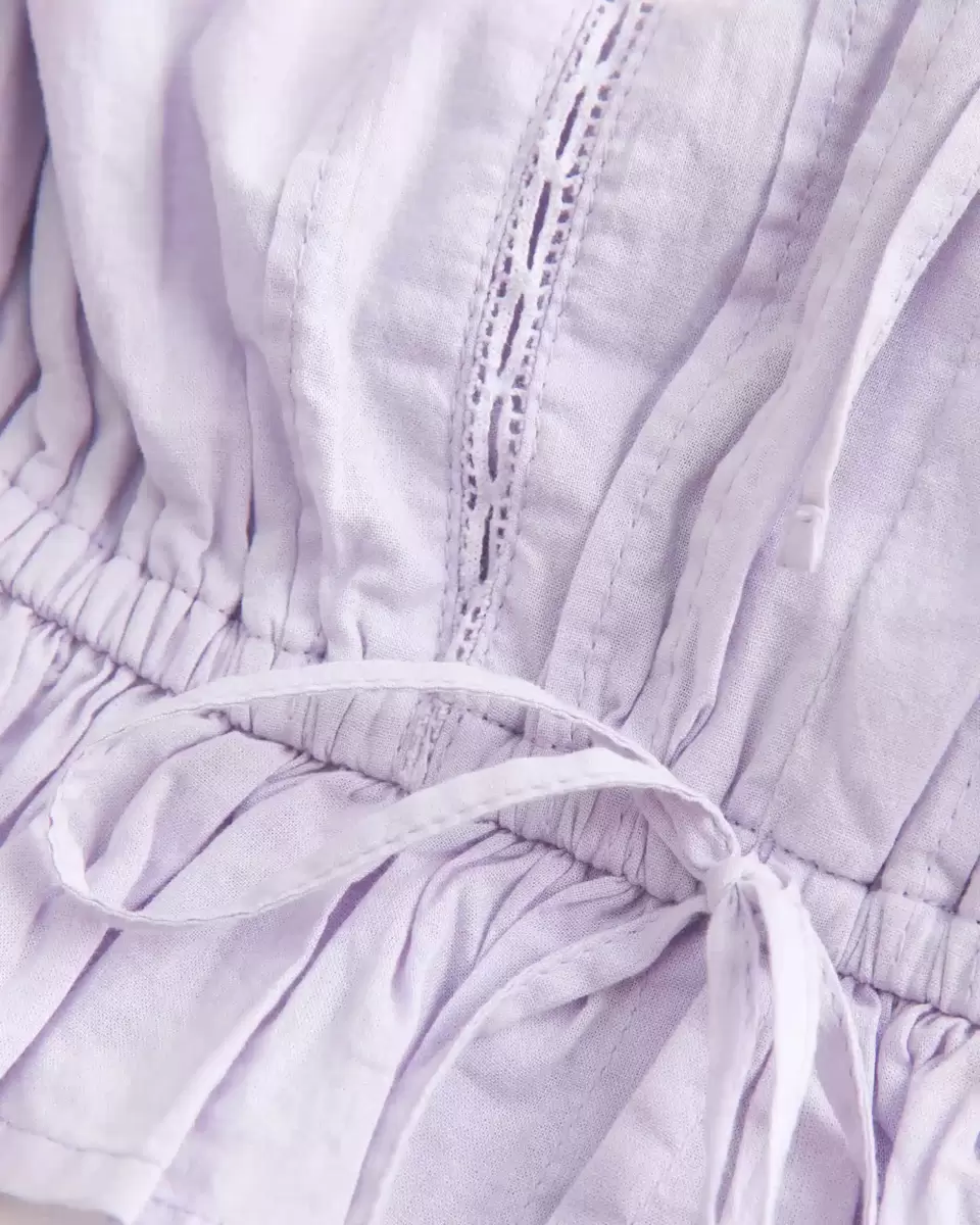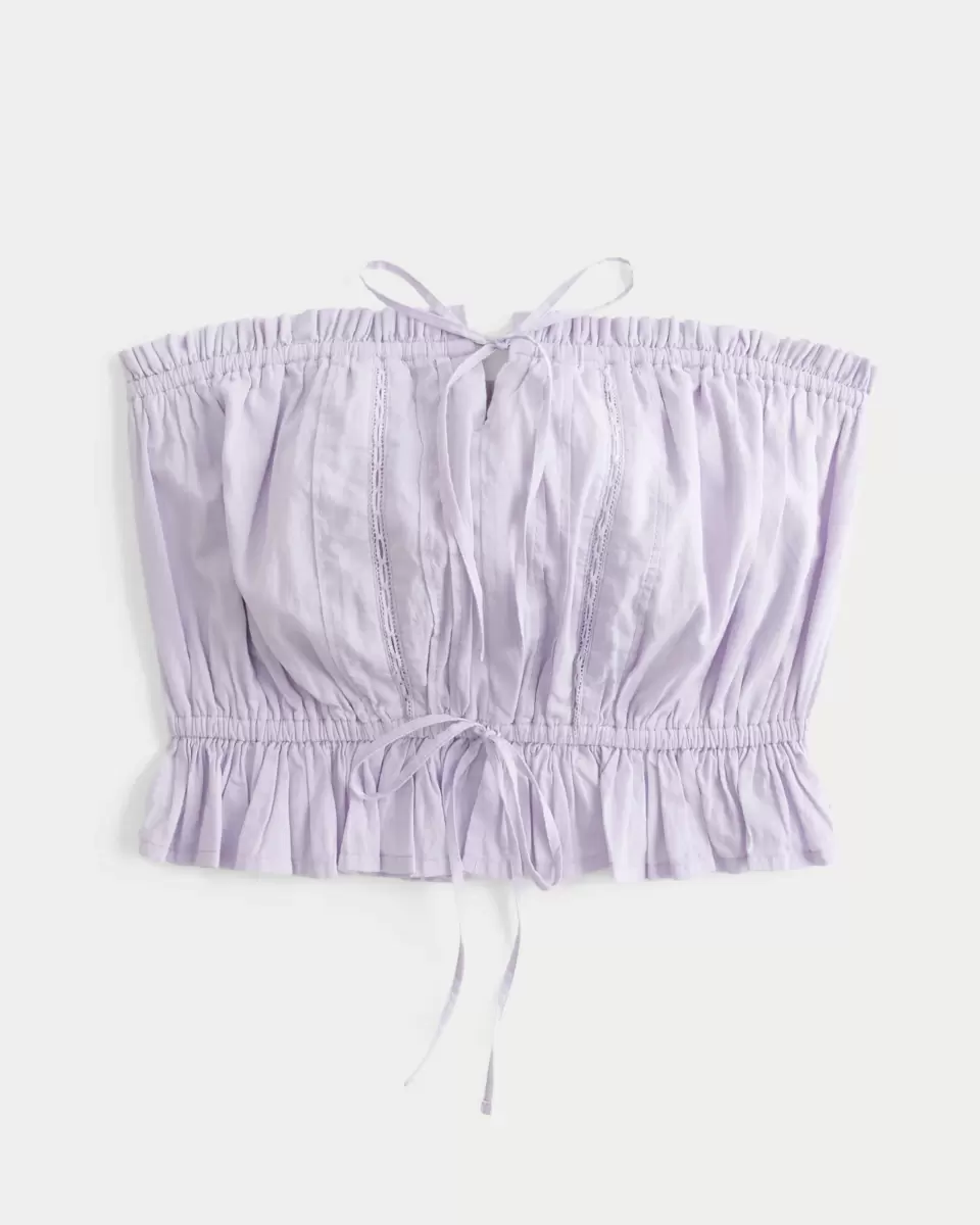 This super soft tube top is perfect for warm, sunny weather! Made with voile fabric, strapless silhouette with ties at the neckline and waist, pretty lace insets, ruffle trims. Easy Fit. Imported.