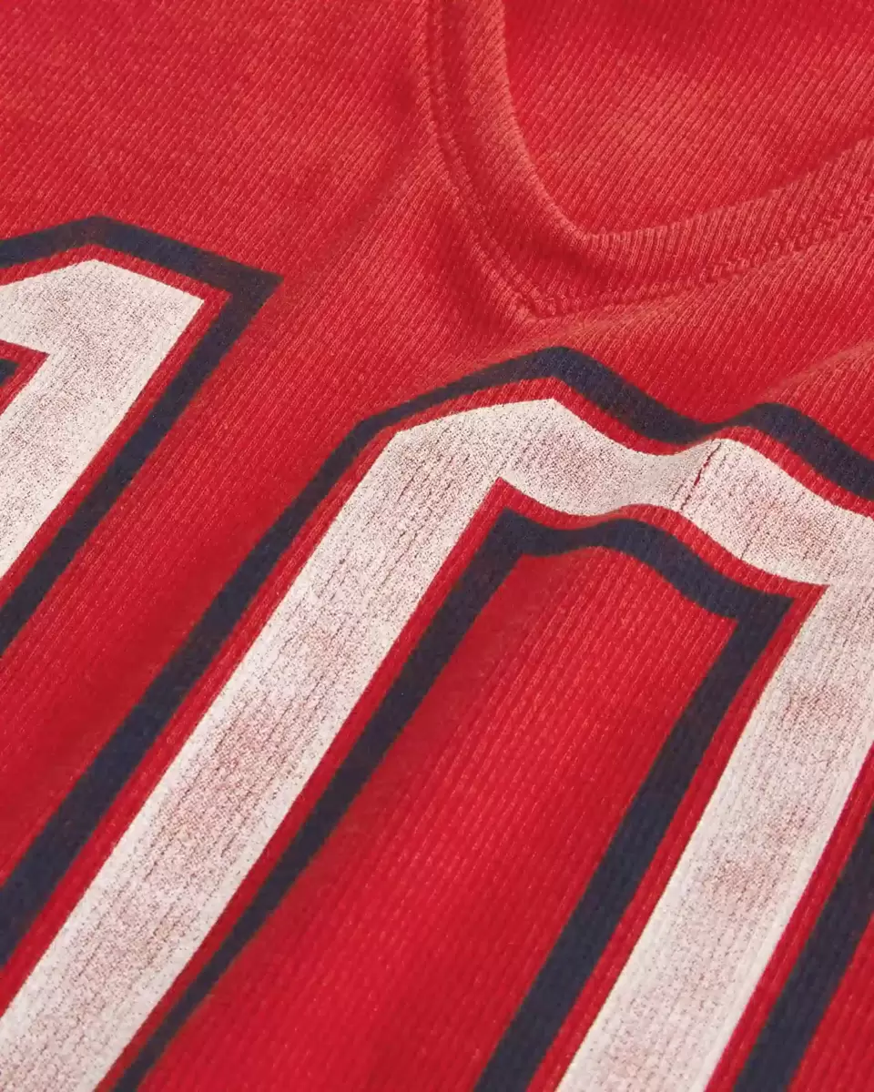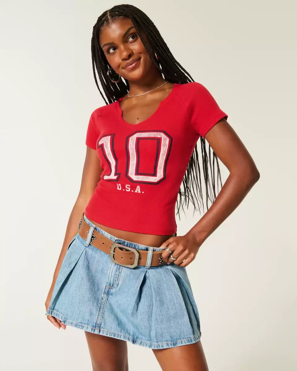 A cute and comfy baby tee in soft ribbed fabric, designed with a slightly shrunken silhouette. Notch neckline, sporty USA and number print graphics, short sleeves. Easy Fit. Imported.