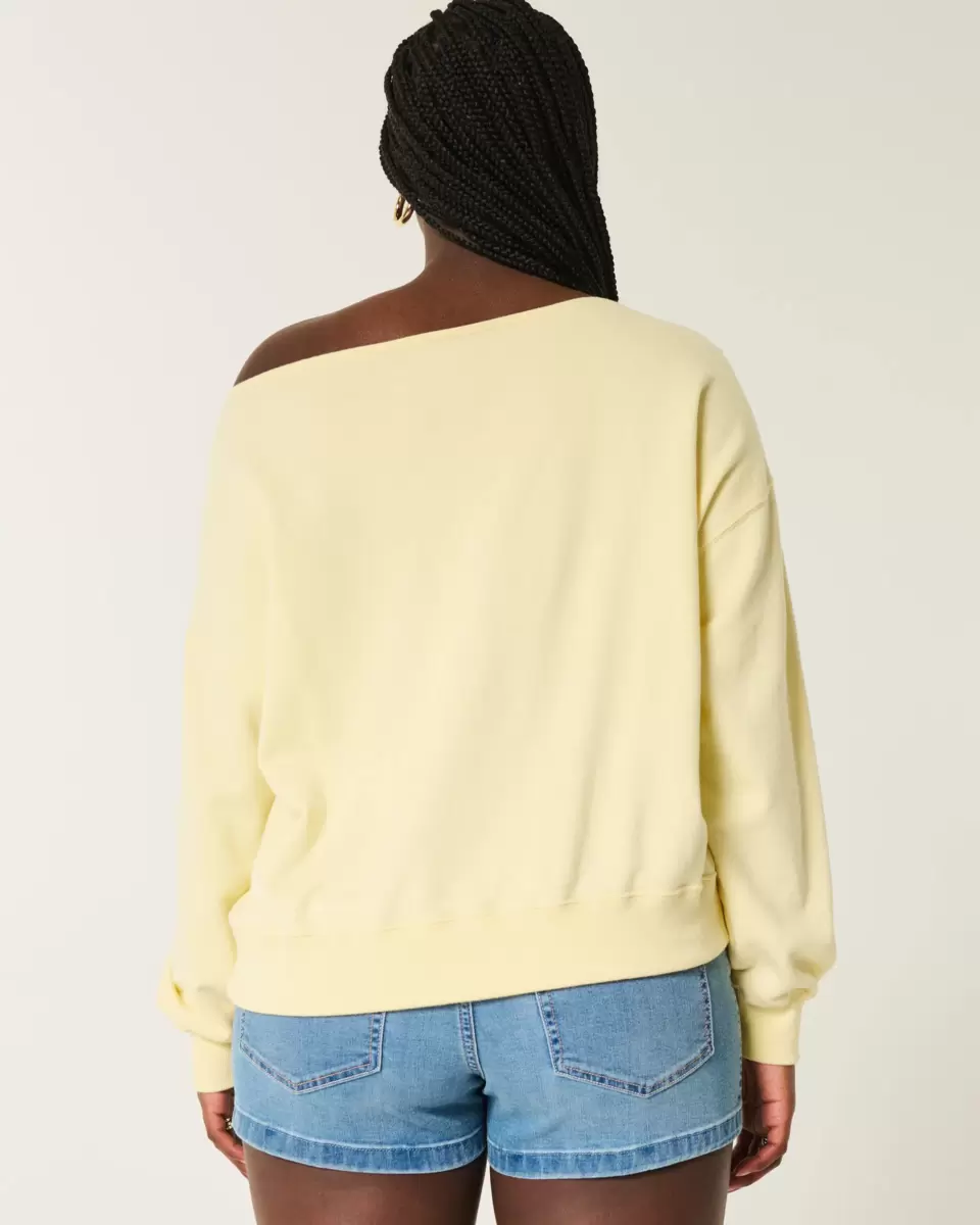 A super soft fleece sweatshirt featuring Southampton print graphics, an off-the-shoulder neckline and long sleeves. Easy Fit. Imported.