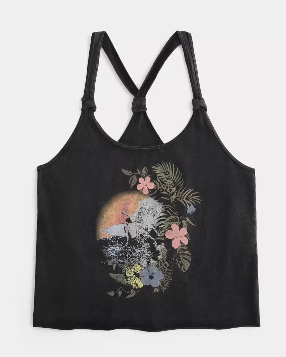 Trend drop! A super soft 100% cotton tank with surf print graphics. Easy Fit. Imported.