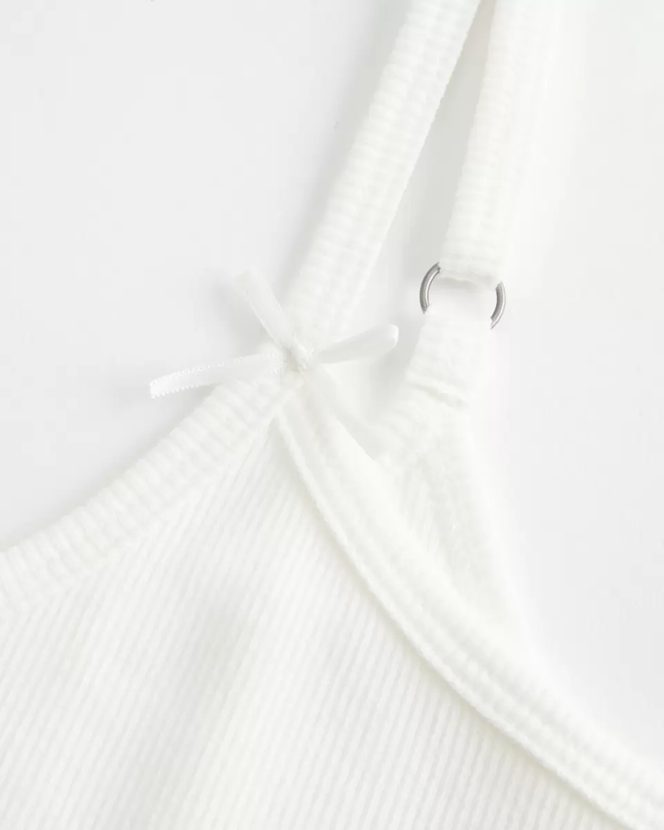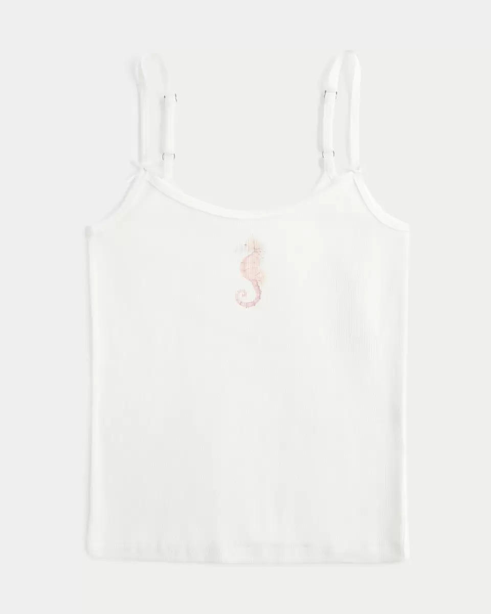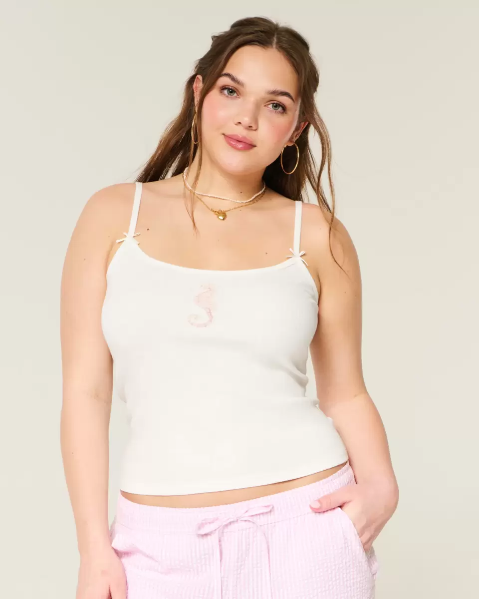 This cute cami is made with soft ribbed fabric and features a seahorse print graphic. Adjustable straps with pretty bow details. Slim Fit. Imported.