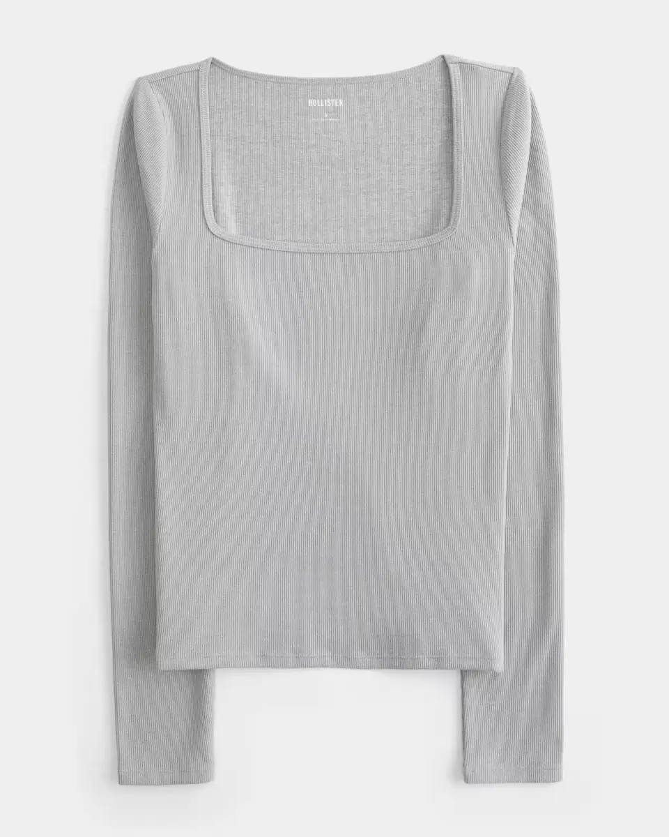 This cute and cozy top is made with super soft ribbed fabric with a seamless look and feel. Square neckline, long sleeves. Slim Fit. Imported.