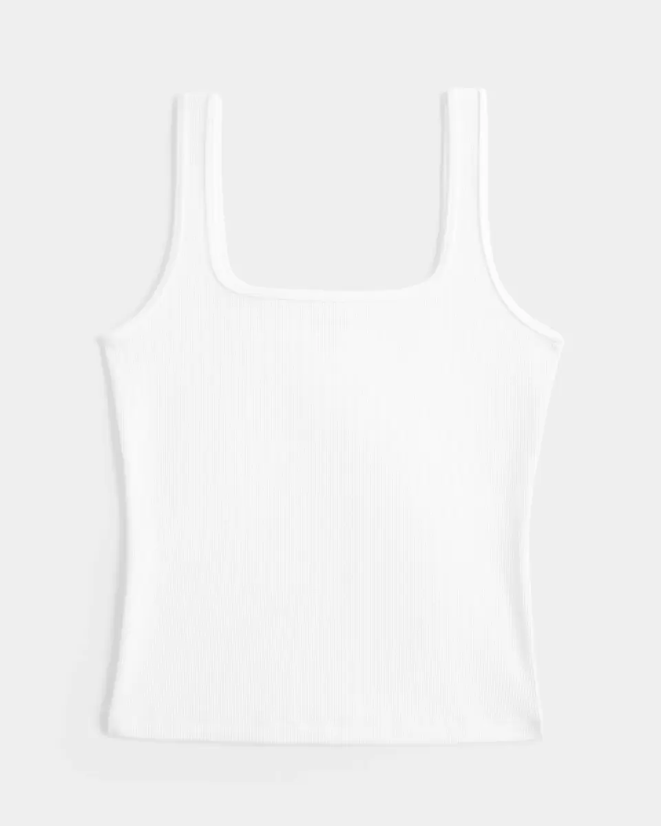 A cute and comfy tank in ribbed fabric with a seamless look and feel. Square neckline. Slim Fit. Imported.