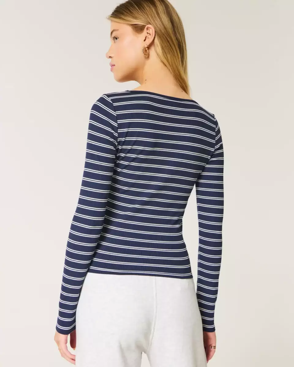 An ultra-soft and cozy long-sleeve top in ribbed fabric with a seamless look and feel. Square neckline, long sleeves. Slim Fit. Imported.
