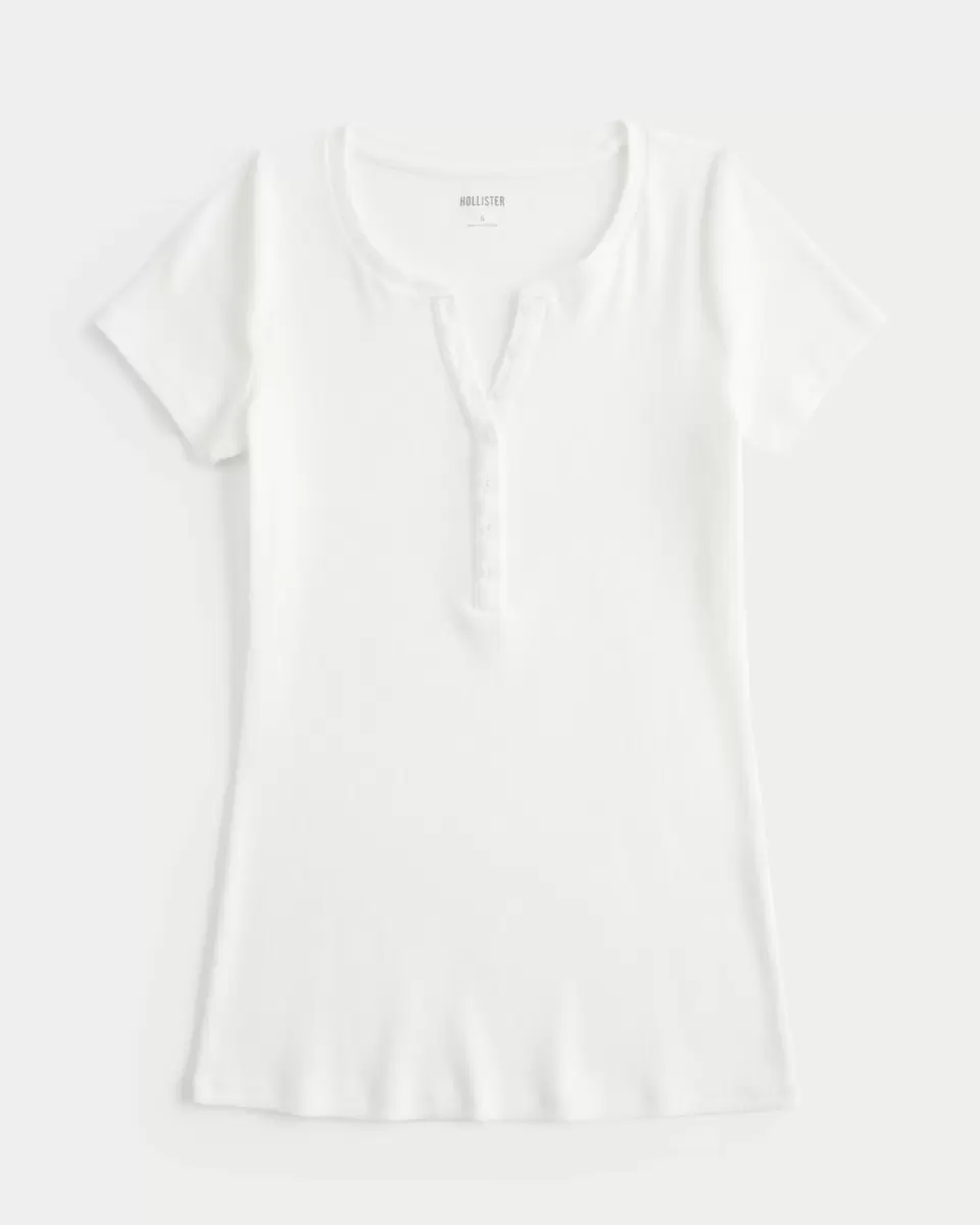 A super soft and comfy Y2K-inspired henley with short sleeves and a button placket. Longer length. Slim Fit. Imported.
