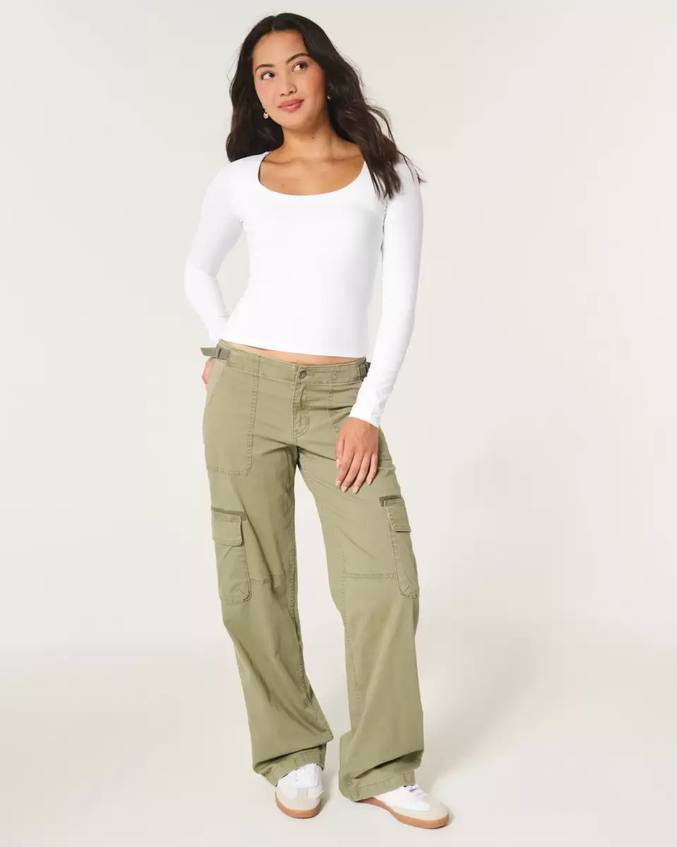 Cute and comfy, this long-sleeve top is made with soft stretch fabric with a seamless look and feel. Scoop neckline, built-in shelf bra. Slim Fit.