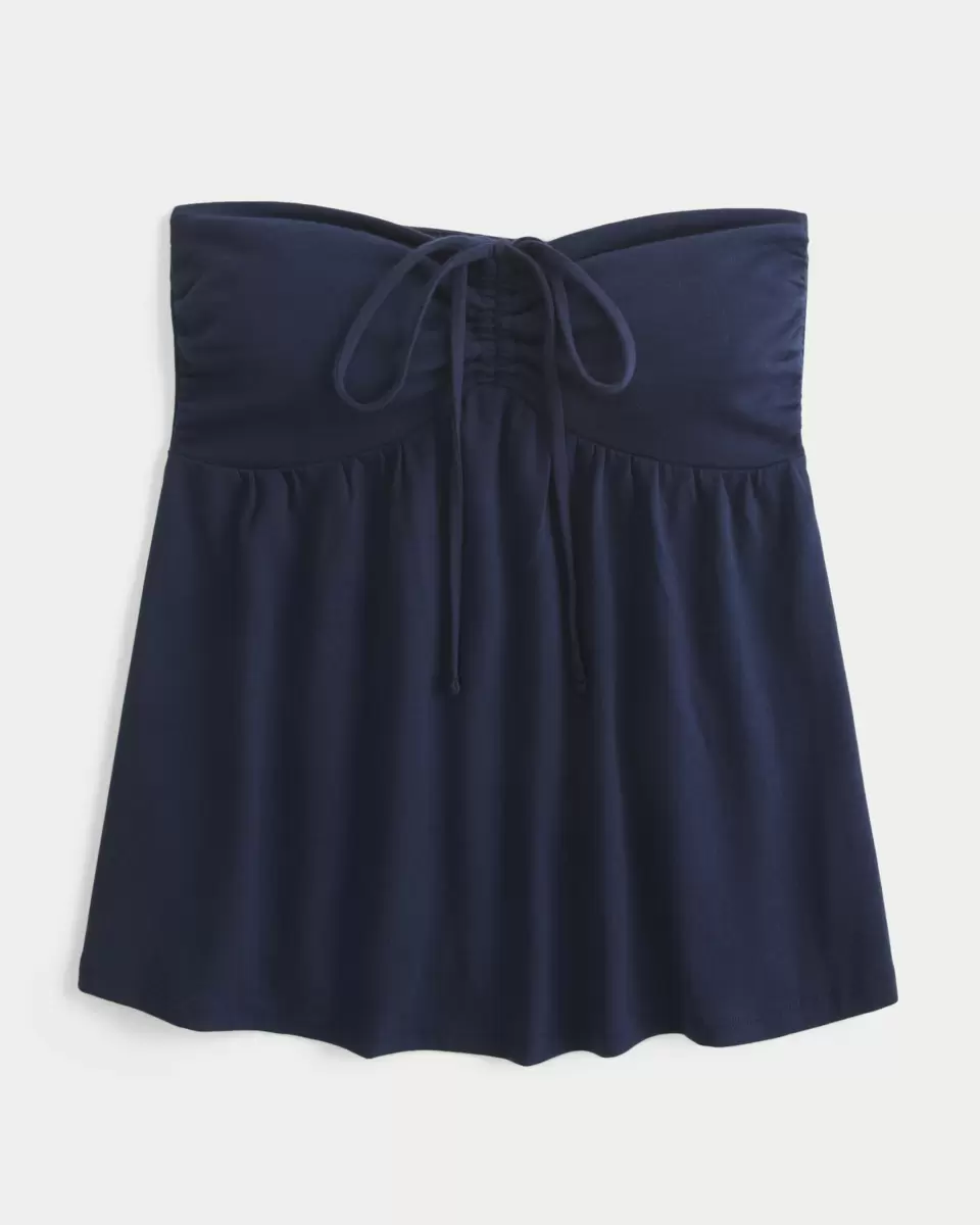 Flowy and super soft, this babydoll top features a cinched bust with tie detail and strapless neckline with the option to tie as a halter top. Double-lined at bust. Easy Fit. Imported.