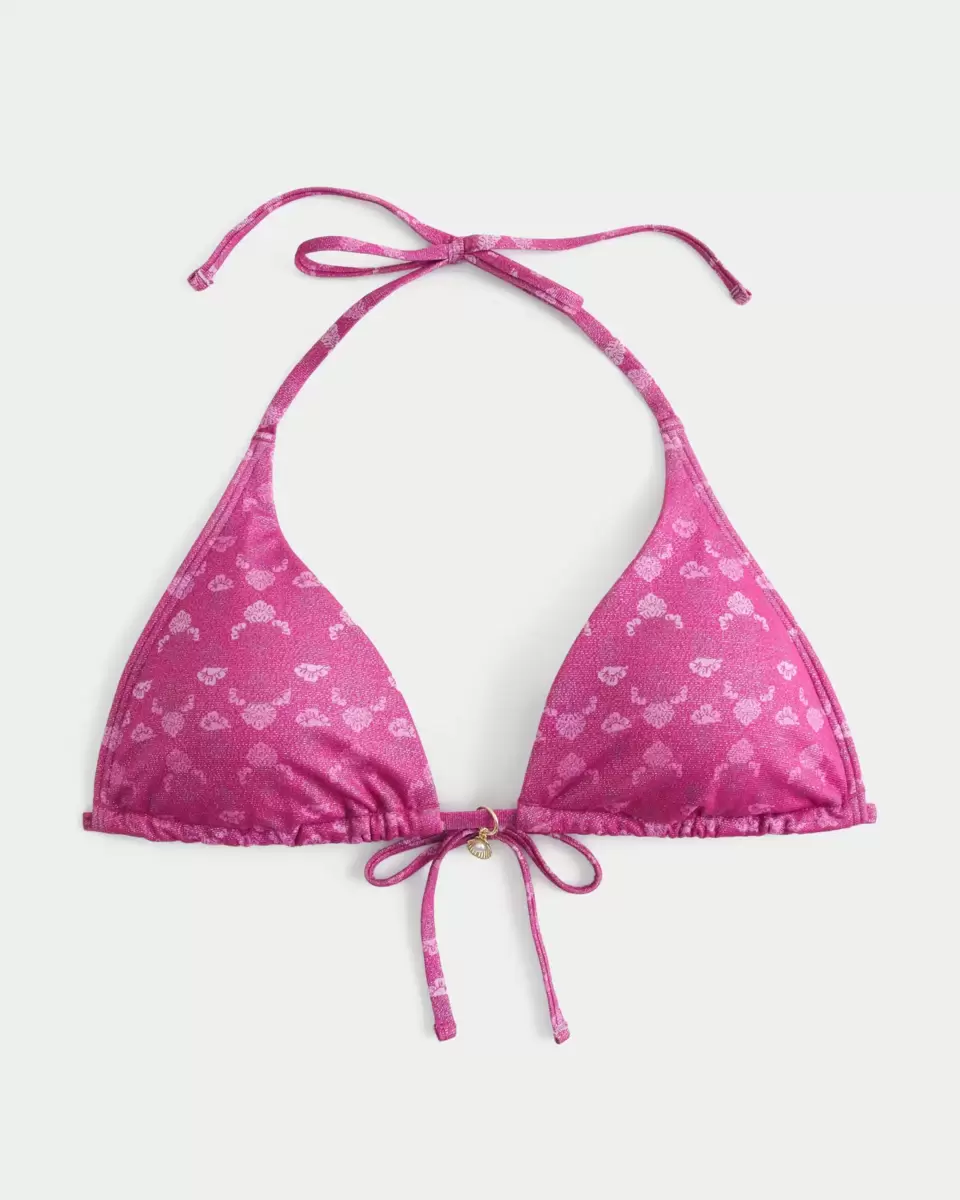 Made with soft swim fabric with shimmer, this bikini top is designed to be worn as a halter or flipped upside-down for a bandeau/triangle look. Cute metal charm detail. Imported.