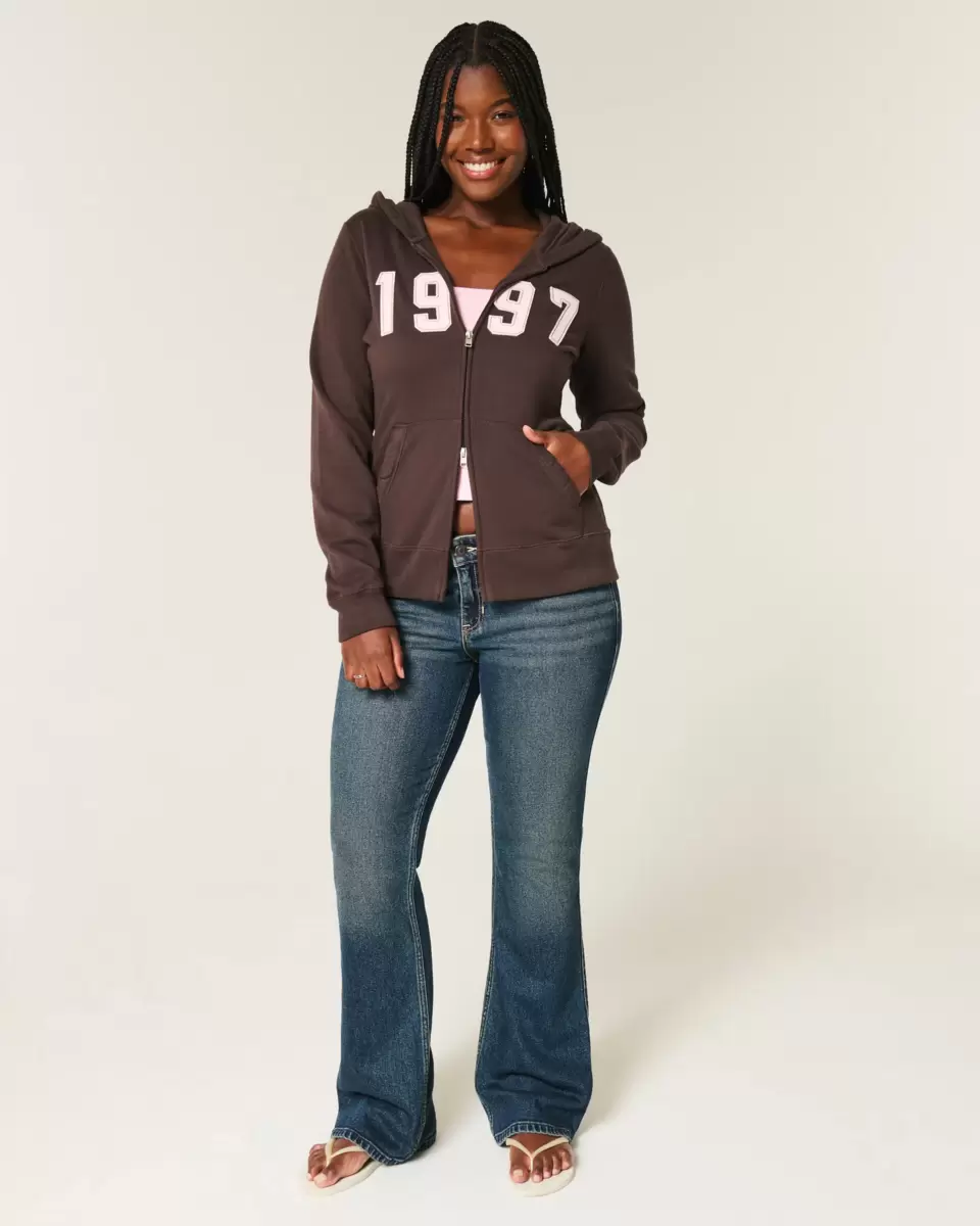 A super soft fleece hoodie featuring 1997 graphic applique. Full zip-up closure, long sleeves, front pockets, hood. Slim Fit. Imported.