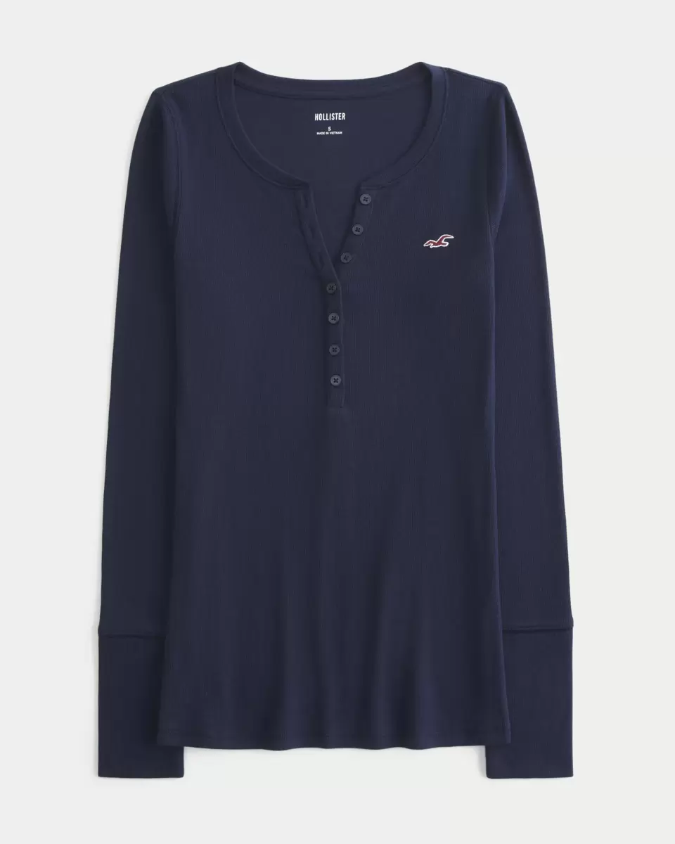 Cozy and super soft, this longer-length henley features a button placket and embroidered left chest logo icon. Long sleeves. Slim Fit. Imported.