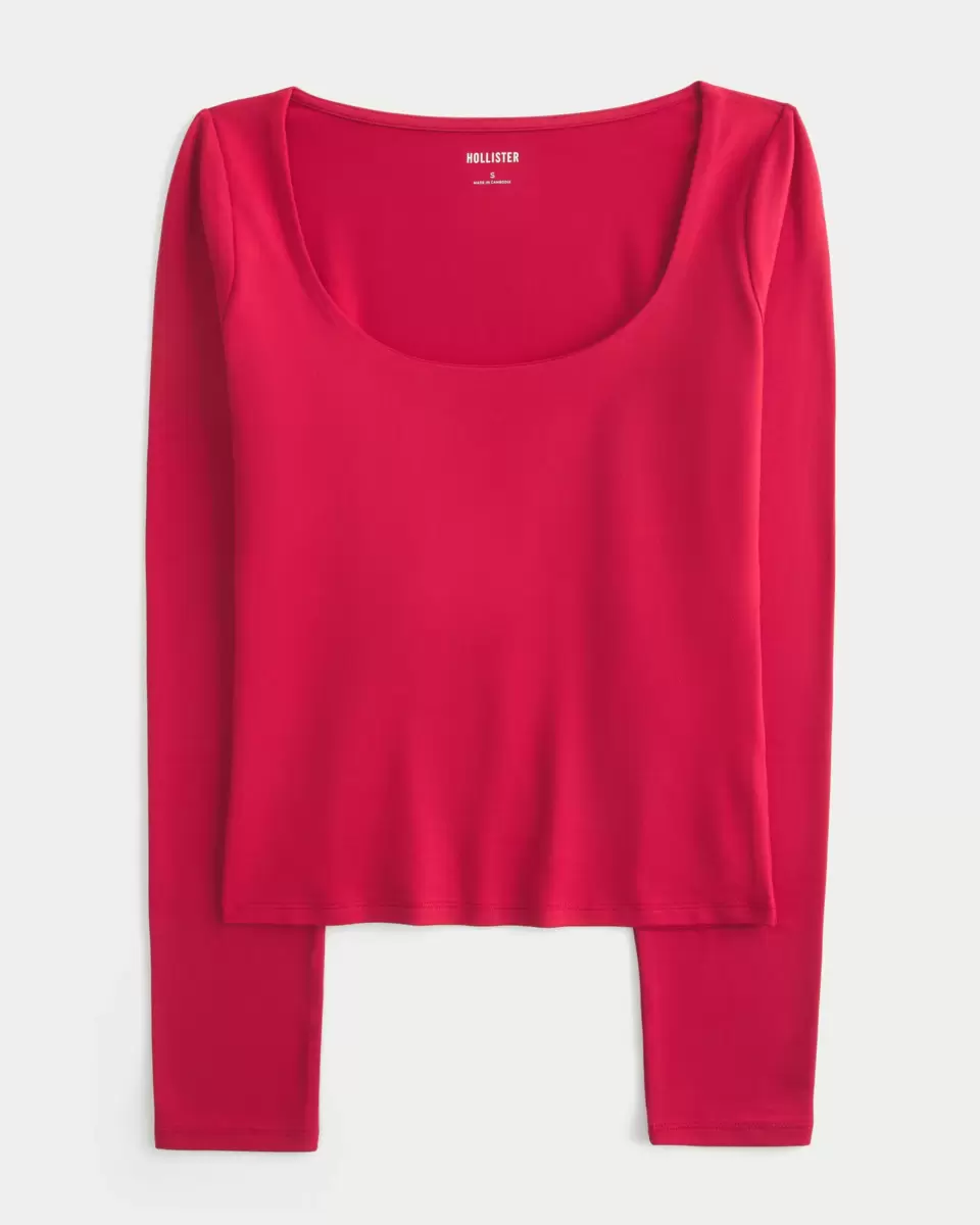 A cute and comfy top in super soft fabric with a seamless look and feel. Scoop neckline, long sleeves. Slim Fit. Imported.