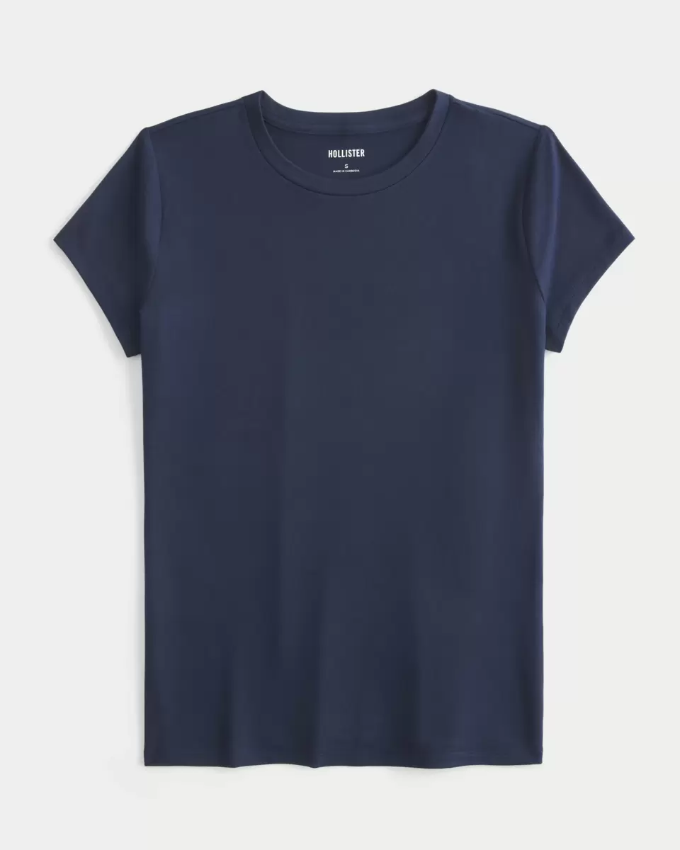 A cute and comfy baby tee in super soft fabric with a seamless look and feel, designed with a slightly shrunken silhouette. Crew neckline, short sleeves. Imported.