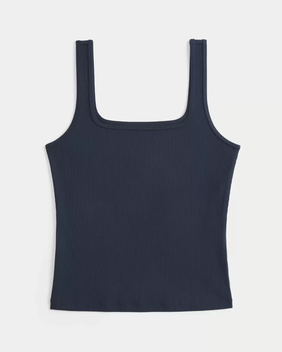 A cute and comfy tank in ribbed fabric with a seamless look and feel. Square neckline. Slim Fit. Imported.