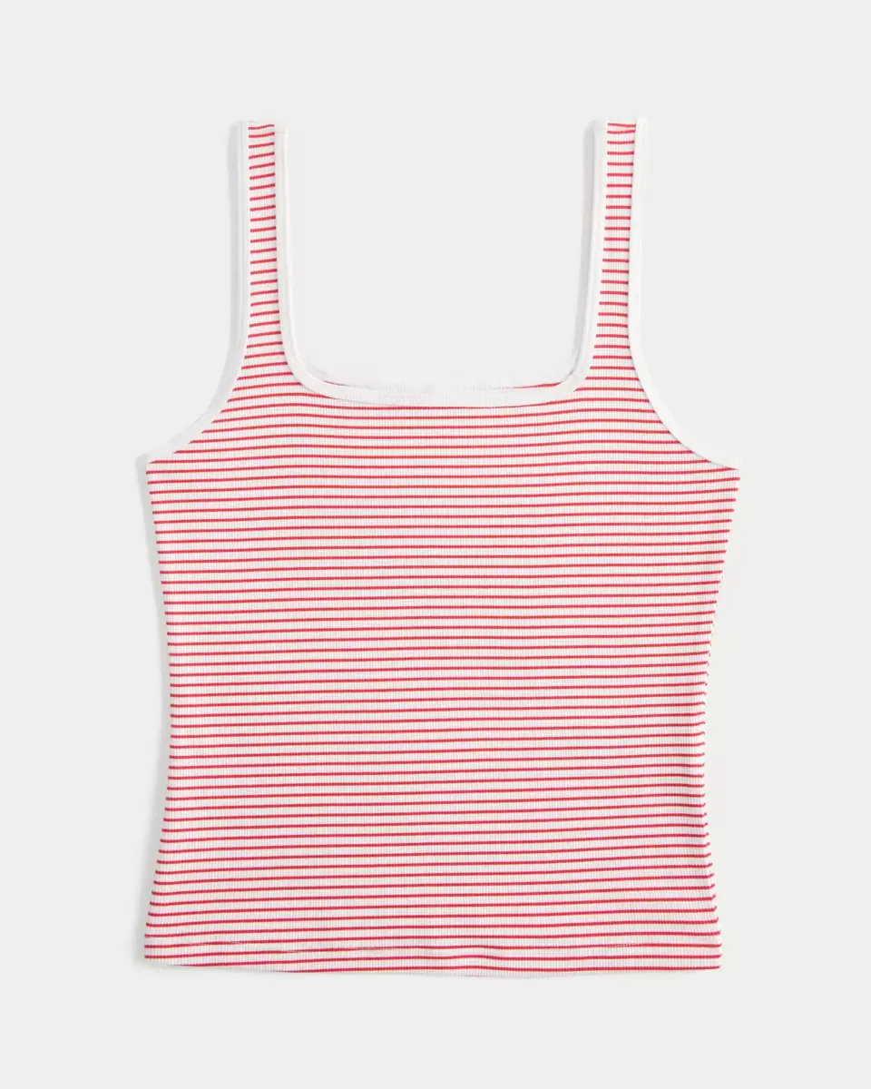 A cute and comfy tank in ribbed fabric with a seamless look and feel. Square neckline. Slim Fit. Imported.