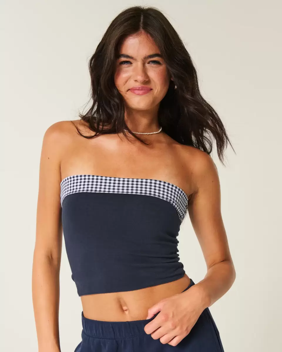 This cute and comfy reversible tube top is made with a super soft cotton blend. Looks amazing folded over and not folded over. Four ways to wear this must-have top, as featured in the photos! Slim Fit. Imported.